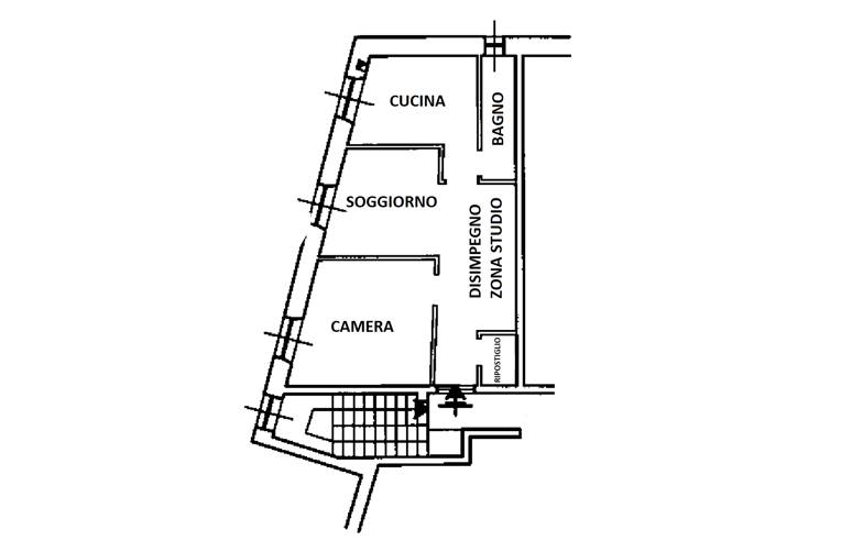 Camera, salotto, cucina, bagno e disimpegno/zona studio, ampio sgabuzzino ed enorme soppalco per dispensa.