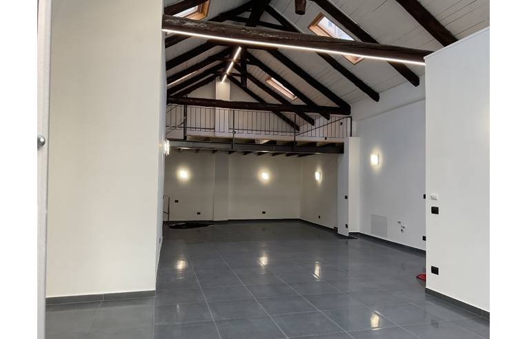 Al piano superiore, un ampio locale soppalcato molto alto con splendida luminosità naturale durante tutto il giorno proveniente da grandi finestrati