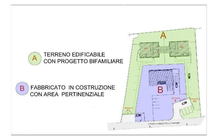 TERRENO EDIFICABILE (VOLUMETRIA COMPLESSIVA 660 MC) CHE SI TROVA IN UN CONTESTO RISERVATO MA ALLO STESSO TEMPO BEN SERVITO DA STRADA ASFALTATA E DOTATO DI TUTTI I SERVIZI, FOGNATURA PUBBLICA, ACQUEDOTTO E ILLUMINAZIONE PUBBLICA. ACCESSO AUTONOMO PER ENTRAMBE LE ABITAZIONI.